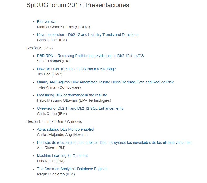 Celebrado el SpDUG forum 2017, el comité organizador agradece a patrocinadores, ponentes y asistentes su participación e interés en el evento, que reunió más de 100 personas alrededor de la tecnología DB2.